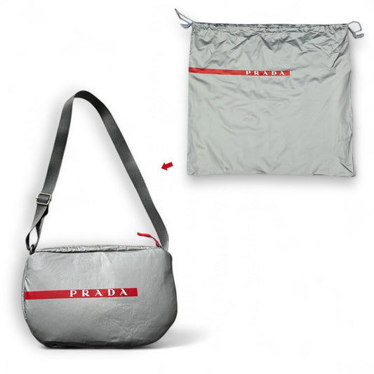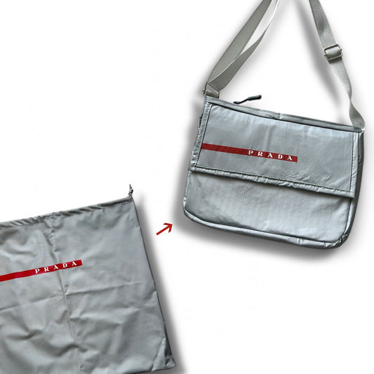 • UPCYCLED PRADA DUSTBAG MESSENGER BAG
